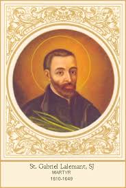 Gabriel Lalemant was born in Paris and educated at Clermont College. He entered the Jesuit novitiate at nineteen. He had a burning desire to serve as a missionary in New France and when he pronounced his vows to the Society, he added another vow to devote himself to the foreign mission. He spent the first seven years teaching in France as his yearly request to go to New France was rejected by his superior, partly because of his poor health. His prayer was finally answered in 1646 when his provincial appointed him to the Huron mission through the intervention of his uncle who was the superior of the mission. Together with three other Jesuits and one brother, he arrived in Quebec on Sep 1646.
