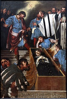 Francis Borgia was born in his family’s palace in Valencia, Spain and was the oldest son of the third duke of Gandia. His great paternal grandfather was Pope Alexander VI and his mother’s grandfather was King Ferdinand the Catholic. He grew up in the court of King Charles V and was a well-trained and accomplished nobleman.