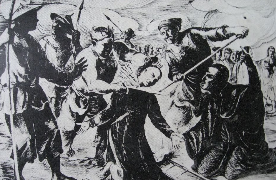 Francis Mary Bucherelli was born in Tuscany, in Empoli, Italy. He studied with the Jesuits in Florence and entered the Society in 1700 with the desire of one day serving in foreign missions. He studied at the Roman College and while a student of theology he received word of his appointment to India and given two days to prepare for the voyage. He left Rome at the end of 1713 and stopped at Sienna to visit his younger brother, Luigi, also a Jesuit, before sailing off from Lisbon, Portugal in 1714. He arrived in Goa, India where he completed his theology and was ordained. He went on the Tonkin mission in 1716 and in a letter to his brother Luigi a year later he described that he lived on a boat which served as both his home and church. In that manner he traveled throughout his mission ministering to the faithful. With the coming of persecution, mission stations were destroyed, Christians were arrested and the missionaries were forced to go underground, living in harsh conditions, without food and rest, continually eluding police and spies. To ensure their safety, the Jesuit superior in China ordered Frs Bucherelli and Messari to leave for Macau in 1722 and while they were near the Chinese border in Lofeu, they were arrested together with three of their catechists.